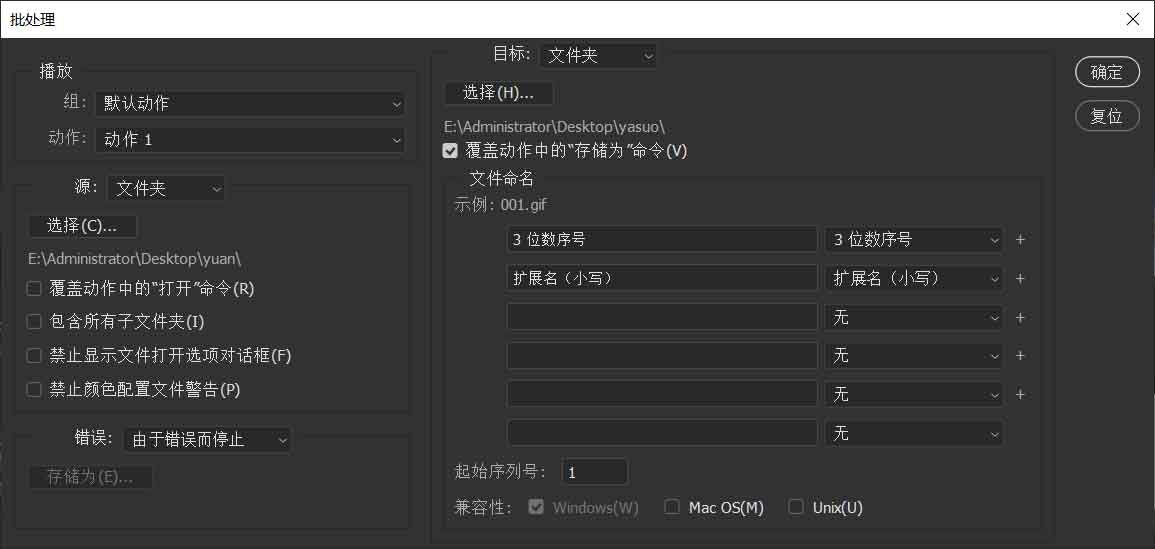 覆盖动作中的"存储为"命令。 - 选择重命名格式。