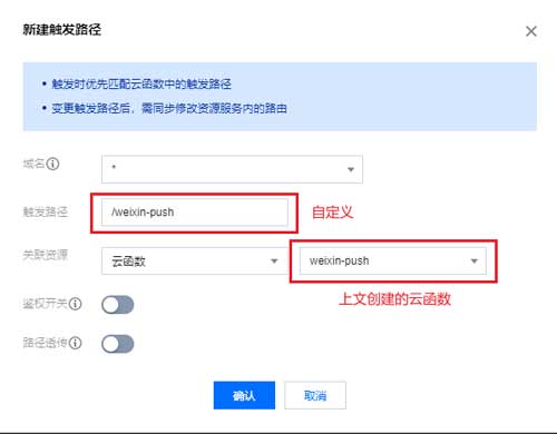 触发路径:/weixin-push           (自定义)